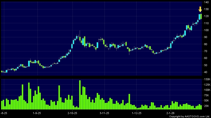 HUA HONG SEMI(01347.HK) shows a trend reversal. Last printed at 116.200; fell 5.297%; on volume of 27.88M shares and turnover of $3.30BRecent PerformanceIn 3 days: +4.496%In 5 days...