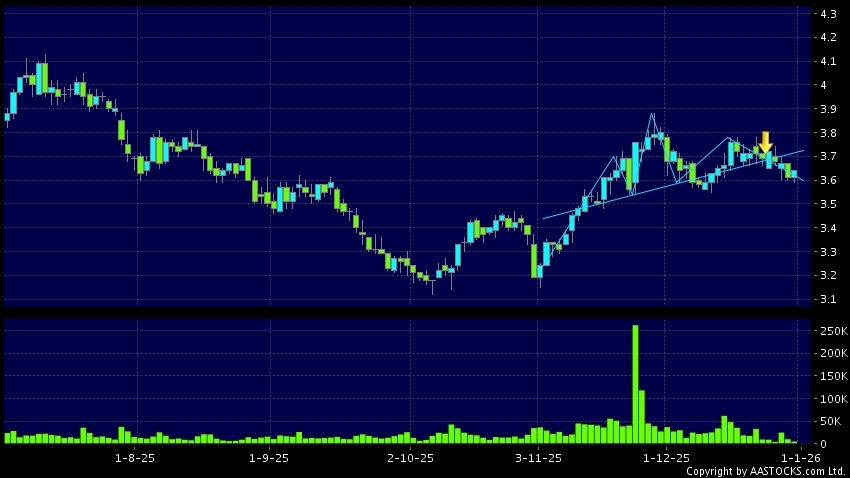 Head Shoulders top is a typical bearish signal, when stock price breaks the supportive level, downtrend would possibly start.(HK stocks quote is delayed for at least 15 mins.Short Selling Data as at 2026-01-02 16:25.)