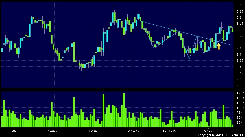 头肩底是典型的利好讯号,当股价升穿阻力线时,升势确认股价将持续上升,技术走势向好。(港股报价延迟最少十五分钟。沽空资料截至 2026-01-22 16:25。)