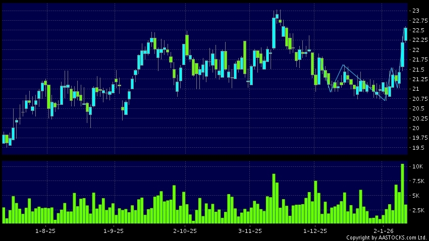 免责声明:以上金融市场数据丶报价丶图表 及/或各种技术分析指标乃根据公开资料分析和演释自动生成的,仅作参考使用。此类自动生成的内容并不代表AASTOCKS.com Limited的立场。AASTOCKS.com Limited并不保证其准确性丶完整性丶实时性或者正确性。阁下应谘询独立专业意见,以核实定价资料或获取更详细的市场信息及须为所有跟随此类自动生成的内容执行的交易或使用该内容负责。