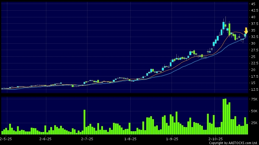 江西銅業股份(00358.HK) +1.460 (+4.345%) 沽空 $2.84億; 比率 22.125% 10天移動平均線跌穿20天移動平均線,出現死亡交叉。現價報35.160,上升4.643%,成交量2.28千萬股,成交額7.94億。