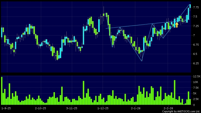 免責聲明:以上金融市場數據、報價、圖表 及/或各種技術分析指標乃根據公開資料分析和演釋自動生成的,僅作參考使用。此類自動生成的內容並不代表AASTOCKS.com Limited的立場。AASTOCKS.com Limited並不保證其準確性、完整性、實時性或者正確性。閣下應諮詢獨立專業意見,以核實定價資料或獲取更詳細的市場信息及須為所有跟隨此類自動生成的內容執行的交易或使用該內容負責。