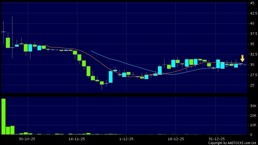 聚水潭(06687.HK) +0.040 (+0.139%) 10天移動平均線跌穿20天移動平均線,出現死亡交叉。現價報29.880,下跌0.928%,成交量2.64萬股,成交額79.05萬。